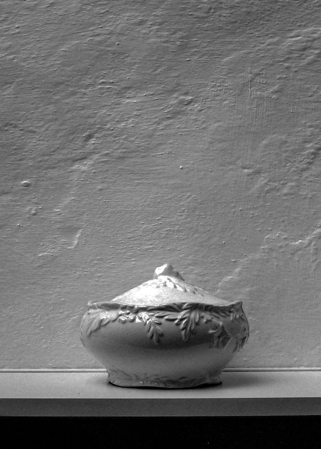 A.Z.O.: La única imagen que esta adosada al libro y que uno siempre ve mientras lee el libro, es la vasija de porcelana blanca. Es una imagen es misteriosa y mágica pues las personas le dan varias interpretaciones a ese objeto. Lo ven como una sopera que nos habla de las madres que alimentan a su familia, o hablan de ella como un osario. Para otros que es un objeto amado. Para mí, es de libre interpretación, es el lector el que la da sentido de acuerdo a sus emociones y a su bagaje intelectual. Porque en mi concepto la finalidad del libro de fotografía es generar una partitura donde cada lector es el intérprete. Este concepto se decanta de la frase de Ansel Adams, quien dice: “El negativo es la partitura, la copia es la ejecución”.