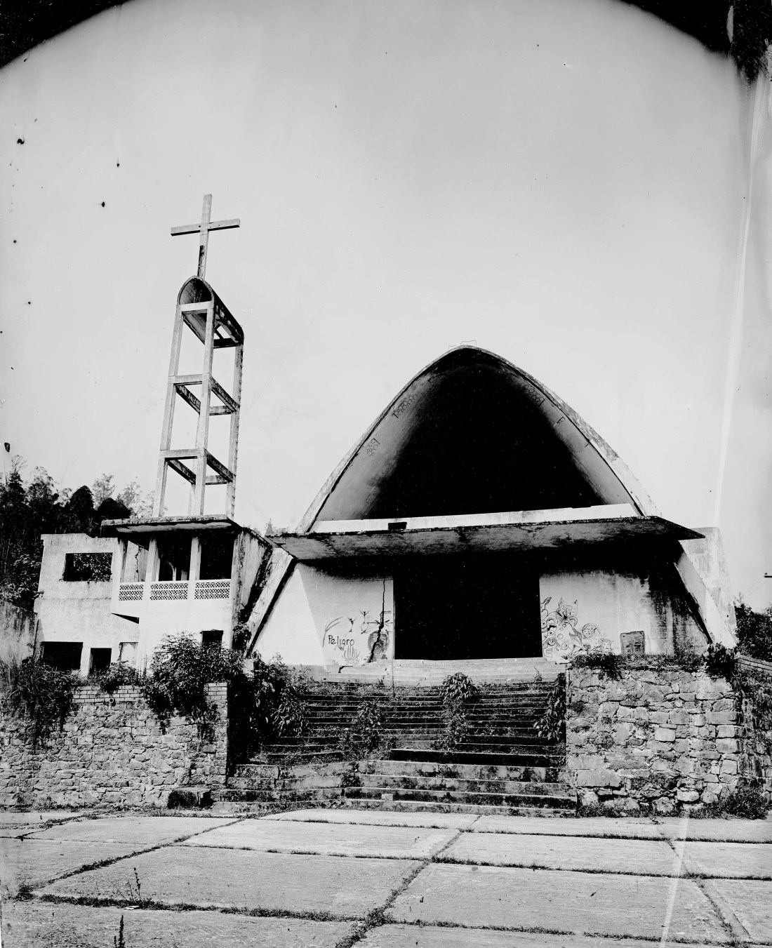 P.D.F.: En la última conversación que tuvimos con Daniela Jácome y con los editores de Inversa, tú me decías que habías estado trabajando con fotografías hechas sobre colodión húmedo. Para ti, fotografiar paisajes abiertos implicaba llevar a cuestas material para reconstituir la cámara obscura en donde estuvieses. Era vivir todo un proceso de registro y revelado que le da a la fotografía una materialidad y una profundidad muy particulares. ¿Cómo ha sido tu experiencia fotográfica en los distintos paisajes de Colombia que recorriste para fotografiar esos paisajes olvidados? ¿En qué momento la ruina apareció como una evidencia para ti?