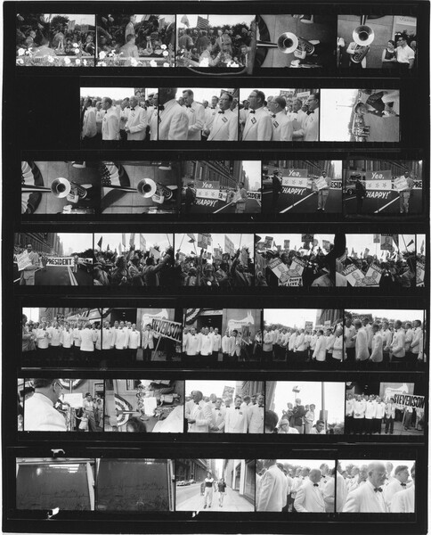Más allá de esta situación ambigua, para el fotógrafo de veintitrés años fue claro que, en ese Día de Acción de Gracias, tanto él como el hombre fuerte, seguían moviéndose de forma vacilante entre el pasado y el futuro. Su entusiasmo por las cosas que había visto y el deleite que le provocaba el trabajar con su nueva cámara, no compensaba el hecho de que muchas veces sumergiera inadvertidamente sus negativos en soluciones químicas que eran demasiado calientes o demasiado frías, haciendo que la emulsión dañara las películas. La mayoría de los fotógrafos, al ver los negativos borrosos, aparentemente hervidos y mal expuestos, los habrían tirado, disgustados por su propia negligencia, decepcionados de haber desperdiciado una oportunidad tan fructuosa. Pero Frank, reconociendo que estos defectos solo intensificaban el ambiente surrealista del hombre fuerte, del desfile y de la ciudad misma, explotó su error a su favor e imprimió el negativo de todos modos.