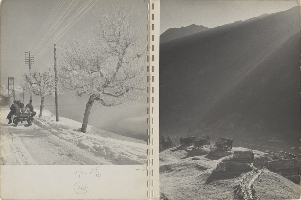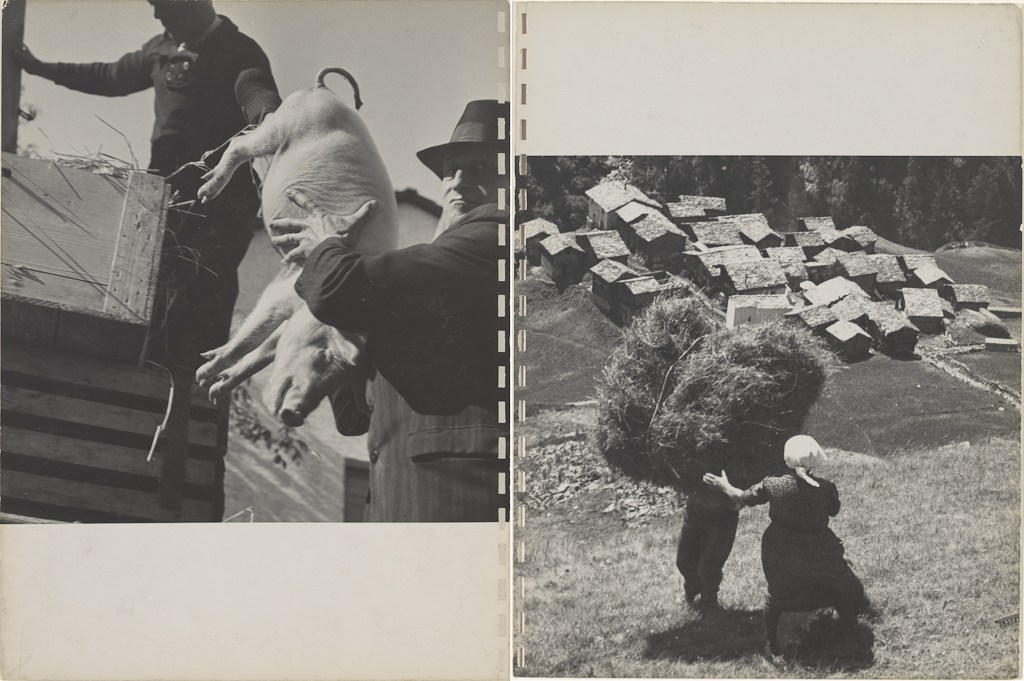 Wolgensinger también introdujo a Frank dentro de la activa industria editorial en Suiza. Dos años después de que Frank comenzara su aprendizaje, Wolgensinger publicó Terra Ladina: Ein Bilderbuch über die Schönheit des Engadins (La Tierra Ladin: Un libro ilustrado sobre la belleza de la Engadina). Aunque varias de las fotografías en el libro están marcadas por su influencia modernista, Wolgensinger hizo muchas más en el nuevo estilo Heimat, celebrando la simplicidad de la vida de los agricultores en esta región y su unidad con la tierra. A pesar de la guerra, se publicaron varios otros libros de fotografía en este momento, incluyendo Bauer und Arbeiter: 70 Photos von Paul Senn (Agricultores y trabajadores: 70 fotos de Paul Senn) con una introducción de Kübler (1943). Más consumado y menos sentimental que el libro de Wolgensinger, también buscó definir el carácter suizo incluyendo representaciones heroicas de los agricultores y trabajadores industriales del país. Al intentar mostrar la solidaridad de todos los trabajadores, Bauer und Arbeiter enfatizó la conexión del agricultor con la tierra y la alienación del trabajador industrial. Ambos libros combinaron fotografías de temas o composiciones similares en cada página, y ambos lograron crear un impulso narrativo a través de la secuenciación, comenzando con fotografías del paisaje para definir la región, seguidas de estudios de las personas y su vida cotidiana. Senn, sin duda con el aporte de Kübler, estableció un ritmo “staccato” en su diseño, a veces sangrando fotografías, a veces centrándolas y otras colocándolas en una esquina de la página.