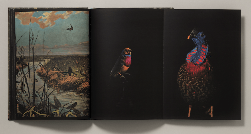 L.L.: Las imágenes de paisajes del libro están relacionadas con la dudosa esencia de la fotografía. ¿El hecho de que haya sido retratado, revelado e impreso hace que el tema retratado sea verdadero? Todas las imágenes de aves en sus hábitats fueron tomadas en el Museo de Historia Natural de Nueva York, por lo que usamos la fotografía como un instrumento de mentira, no como uno capaz de representar la realidad de forma fidedigna y creíble. Lo mismo ocurre con las aves que aparecen vivas en las imágenes, pero no lo están. Esta es la reflexión que el libro quiere provocar.