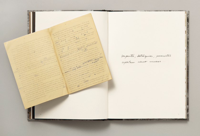 E.P.: El libro es más que un homenaje, ya que el archivo del padre de Norma Vieira siempre ha sido el lugar de inspiración y creación de la artista. Con el tiempo, Norma había buscado ingeniosamente casi todo el archivo de su padre. Luego, junto con la editorial Fabiana Bruno, se descubrió que era posible producir un libro que tratara la narrativa científica de Aristóteris Teixeira Leão a partir de un lenguaje artístico. El trabajo es un cruce de fronteras entre campos del conocimiento, la ciencia y el arte. Un pasaje de lo científico a lo artístico en busca de un camino “posible” de relaciones y conexiones donde estos mundos se encuentran misteriosamente en formas, gestos, colores y texturas.
