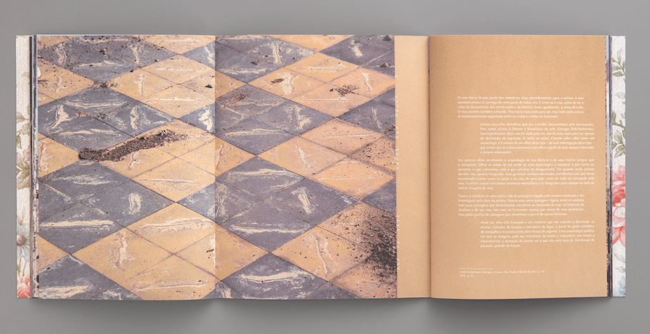 P.D.F.: Pasemos de la zoología y la taxidermia al flujo de los ríos. En la editorial hay varios libros que hablan de este tema. Me gustaría que habláramos de uno en particular: Onde Jaz Meu Céu Estrelado de Juliana Jacyntho. El libro retoma una historia hecha contra múltiples recuerdos y registros fotográficos. Cuando la artista visual Juliana Jacyntho inició este proyecto en 2016, el mar en Atafona, un pequeño lugar perteneciente a São João da Barra, en el estado de Río de Janeiro, se estaba acercando mucho a las casas de su infancia.