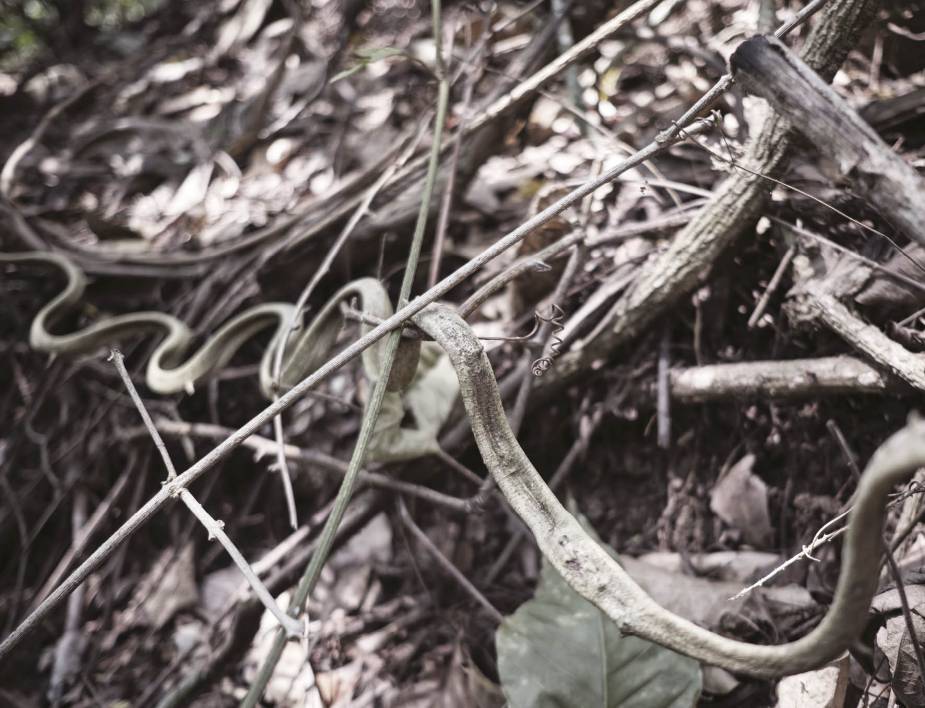 Hernán tiene una especie de acuerdo con el bosque, que en su mayoría es una selva virgen por donde corren cientos de víboras y no es extraño que pasen al menos una vez al día sobre sus botas.