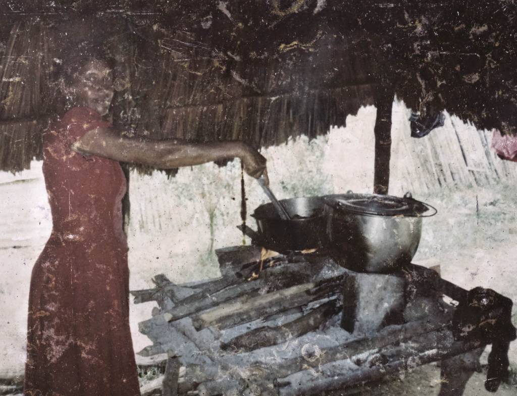 3:30 de la mañana: Reina revolotea de lado a lado, cocina y barre un piso de tierra pisada. Es madre de 7 hijas y un varón, me cuenta que ninguna de sus hijas va a sufrir por amor ni pasará trabajos pues fue ella quien las crió. Llegó de Ovejas, Sucre, de la mano de Eduardo, su esposo, con la promesa de una tierra propia. Hoy, 30 años después, cortan palma de su tierra y ponen uno a uno los amarres de su techo.