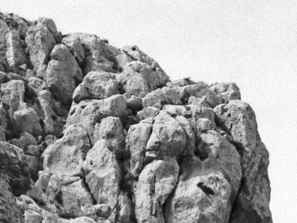 C.D.B.: Sí, estas escalas también forman parte de la investigación. Aunque esta es también una cuestión de perspectiva. Me fascinaba la idea de que cuando te acercas a la piedra con una cámara parece una especie de montaña. Fue la misma cuestión de perspectiva la que me llevó a recopilar imágenes de mis imágenes al tomar extractos de ellas. Era como elaborar un trabajo de experimentación visual con una fuerte carga poética. Me acerqué mucho a las piedras, tomé imágenes macro y acerqué los negativos, y también me alejé, mirando una montaña majestuosa en el extenso paisaje. Un aspecto tan curioso de caminar en un paisaje es que cuando tratas de acercarte a él, parece que nunca puedes abarcarlo todo, siempre hay un un territorio nuevo a lo lejos que aparece y se te escapa.
