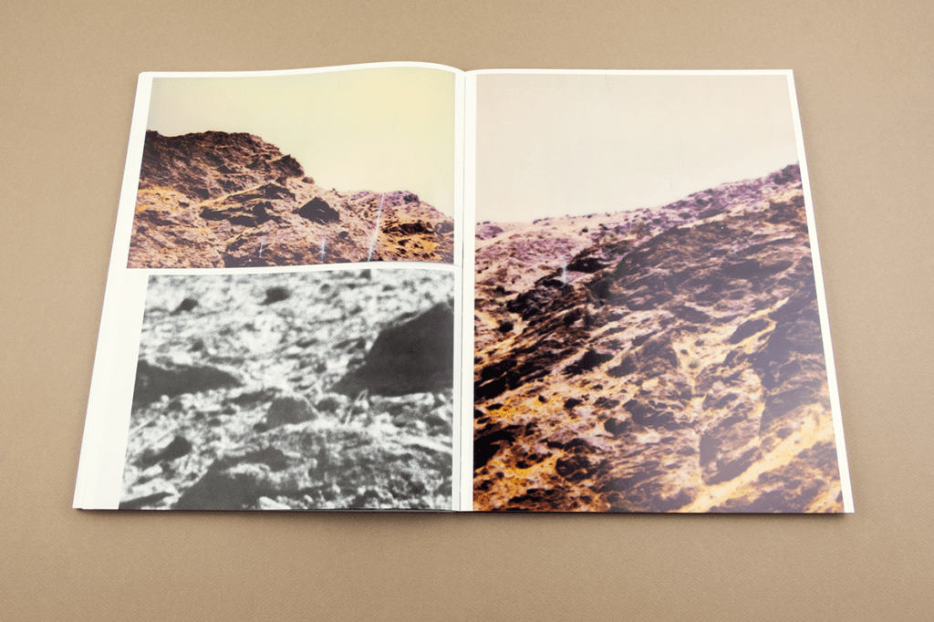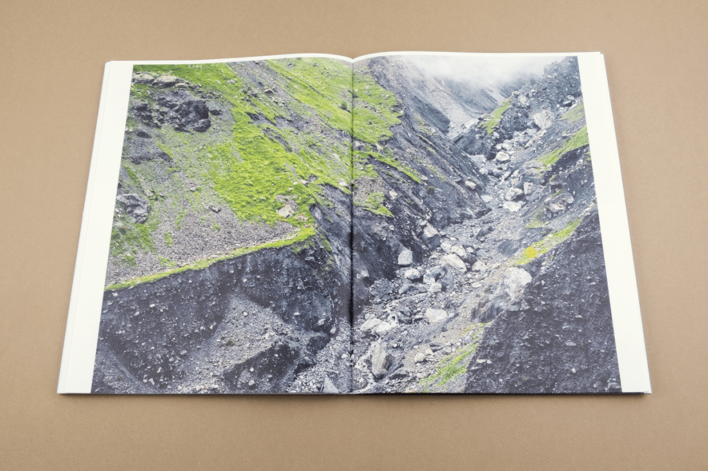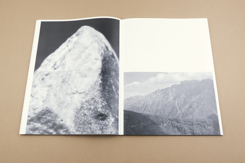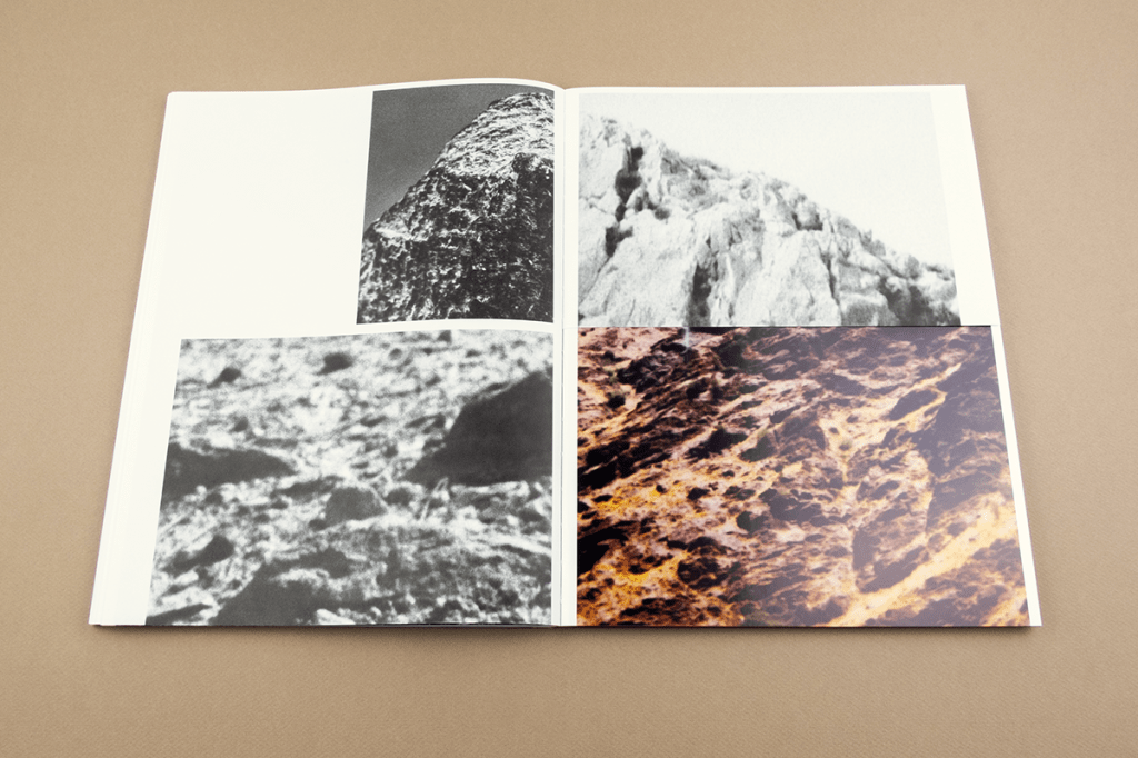 Fui al estudio de The Eriskay Connection con mi colección y hablamos sobre cómo la conexión visual entre piedras, rocas y montañas era importante para mí transmitir en el libro. A Rob van Hoesel se le ocurrió la idea de tener un libro que constara de medias páginas y páginas completas. Para reforzar la tactilidad de las imágenes, su idea fue utilizar cuatro tipos de papeles. Mientras trabajaba en el diseño, seguía recopilando imágenes. Llegué a reunir imágenes de mis imágenes, nuevamente viajando, pero ahora a través de los escaneos de mis negativos y tomando extractos de ellos. Estas imágenes también están en el libro.
