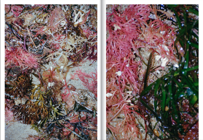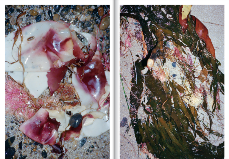 Para mí, por tanto, se trataba de invitar al «espectador» del libro a adentrarse en el paisaje, a descubrirlo a tientas, buscando de cerca esa materia orgánica, esa humedad y esos cuerpos. A medida que avanza en el libro, el lector descubre trozos de algas, rocas y olas se entremezclan con trozos de caras y cuerpos, fragmentos que también constituyen este paisaje; se abordan, se tratan y se muestran de la misma manera: los considero a todos como cuerpos constituyentes del paisaje.