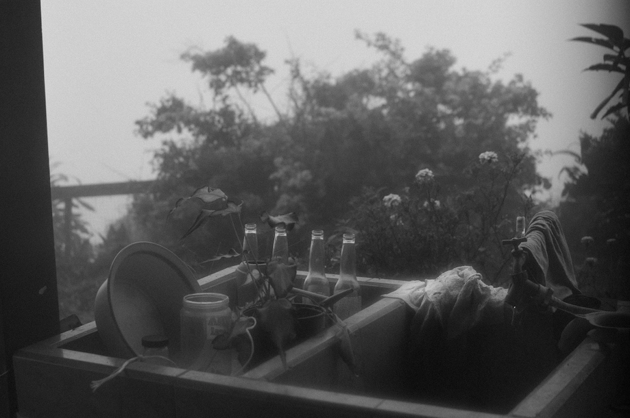 Mi práctica fotográfica en ese momento era más que todo retrospectiva. Yo había acumulado muchísimas fotos de esos años en la iniciativa y luego fotografié mucho más cuando todo se cayó, pero desde un lugar de duelo. El paisaje y abundancia natural en este caso contienen una ironía que se acentúa con el título del proyecto. Yo no busqué la belleza como estaba acostumbrado a hacerlo, yo busqué adentrarme en el dolor, el abandono de esquinas y cuartos que ya no tenían función porque ya no había huéspedes, la muerte de criaturas y heridas que trataban de sanarse con masking tape, refracciones, ambigüedad y sobre todo claustrofobia. La belleza la encontré en la necesidad de agarrarme de un proceso creativo como si fuera el flotador para sacar la cabeza y respirar de vez en cuando. Natsuko también aparece mucho en este proyecto, ella decidió estar cerca de esa versión mía tan difícil y eso es algo que me generaba pena, culpa, pero también muchas ganas de llegar a estar mejor.
